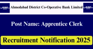 ADC Bank Recruitment 2025 Apply for Various Apprentice Clerk Vacancies in Ahmedabad – Gujarat location. Ahmedabad District Co-Operative Bank Limited Officials are recently published a job notification to fill up Various Posts through Online/Offline mode. All the eligible aspirants can check the ADC Bank career official website i.e., adcbank.coop recruitment 2025. The last date to Apply Online/Offline on or before 12-Sep-2025.