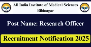 AIIMS Bibinagar Recruitment 2025 Apply for 5 Research Officer Vacancies in Hyderabad – Telangana location. All India Institute of Medical Sciences Bibinagar Officials are recently published a job notification to fill up 5 Posts through E-Mail mode. All the eligible aspirants can check the AIIMS Bibinagar career official website i.e., aiimsbibinagar.edu.in recruitment 2025. The last date to send an E-Mail on or before 30-Dec-2025.