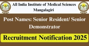 AIIMS Mangalagiri Recruitment 2025 Apply for 117 Senior Resident/ Senior Demonstrator Vacancies in Guntur – Andhra Pradesh location. All India Institute of Medical Sciences Mangalagiri Officials are recently published a job notification to fill up 117 Posts through Online mode. All the eligible aspirants can check the AIIMS Mangalagiri career official website i.e., aiimsmangalagiri.edu.in recruitment 2025. The last date to Apply Online on or before 14-Jun-2025.