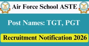 Air Force School ASTE Recruitment 2026 Apply for Various TGT, PGT Vacancies in Bengaluru – Karnataka location. Air Force School ASTE Officials are recently published a job notification to fill up Various Posts through Offline mode. All the eligible aspirants can check the Air Force School ASTE career official website i.e., afsaste.edu.in recruitment 2026. The last date to Apply Offline on or before 05-Jan-2026.