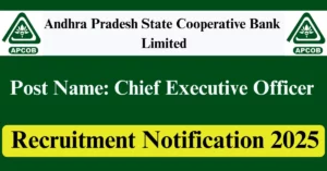 APCOB Recruitment 2025 Apply for Various Managing Director/ Chief Executive Officer Vacancies in Vijayawada – Andhra Pradesh location. Andhra Pradesh State Cooperative Bank Limited Officials are recently published a job notification to fill up Various Posts through Offline mode. All the eligible aspirants can check the APCOB career official website i.e., apcob.org recruitment 2025. The last date to Apply Offline on or before 30-Sep-2025.