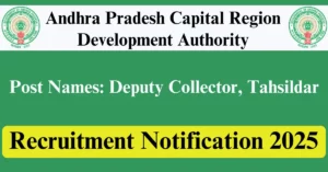 APCRDA Recruitment 2025 Apply for 17 Deputy Collector, Tahsildar Vacancies in Guntur – Andhra Pradesh location. Andhra Pradesh Capital Region Development Authority Officials are recently published a job notification to fill up 17 Posts through Online mode. All the eligible aspirants can check the APCRDA career official website i.e., crda.ap.gov.in recruitment 2025. The last date to Apply Online on or before 02-Dec-2025.