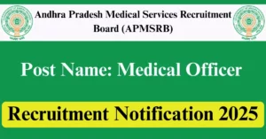 APMSRB Recruitment 2025 Apply for 185 Medical Officer Vacancies in Andhra Pradesh location. Andhra Pradesh Medical Services Recruitment Board Officials are recently published a job notification to fill up 185 Posts through Online mode. All the eligible aspirants can check the APMSRB career official website i.e., apmsrb.ap.gov.in recruitment 2025. The last date to Apply Online on or before 10-Sep-2025.