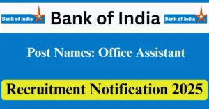 BOI Recruitment 2025 – Apply Offline for 1 Office Assistant Post @ bankofindia.co.in
