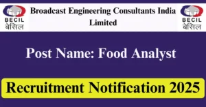 BECIL Recruitment 2025 Apply for 2 Food Analyst Vacancies in Mumbai – Maharashtra location. Broadcast Engineering Consultants India Limited Officials are recently published a job notification to fill up 2 Posts through Offline mode. All the eligible aspirants can check the BECIL career official website i.e., becil.com recruitment 2025. The last date to Apply Offline on or before 12-Sep-2025.