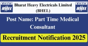 BHEL Recruitment 2025 Apply for 4 Part Time Medical Consultant Vacancies in Jhansi – Uttar Pradesh location. Bharat Heavy Electricals Limited Officials are recently published a job notification to fill up 4 Posts through Walkin mode. All the eligible aspirants can check the BHEL career official website i.e., careers.bhel.in recruitment 2025. The last date to attend for Walk-in-interview on 26-Jul-2025.