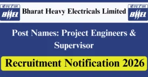 BHEL Recruitment 2026 Apply for 10 Project Engineers & Supervisor Vacancies in Bengaluru – Karnataka location. Bharat Heavy Electricals Limited Officials are recently published a job notification to fill up 10 Posts through Offline mode. All the eligible aspirants can check the BHEL career official website i.e., bap.bhel.com recruitment 2026. The last date to Apply Offline on or before 12-Jan-2026.