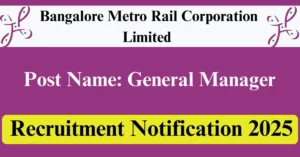 BMRCL Recruitment 2025 Apply for 7 General Manager Vacancies in Bengaluru – Karnataka location. Bangalore Metro Rail Corporation Limited Officials are recently published a job notification to fill up 7 Posts through Online/Offline mode. All the eligible aspirants can check the BMRCL career official website i.e., english.bmrc.co.in recruitment 2025. The last date to Apply Online/Offline on or before 30-Jun-2025.