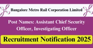 BMRCL Recruitment 2025 Apply for 08 Assistant Chief Security Officer, Investigating Officer Vacancies in Bengaluru – Karnataka location. Bangalore Metro Rail Corporation Limited Officials are recently published a job notification to fill up 08 Posts through Online/Offline mode. All the eligible aspirants can check the BMRCL career official website i.e., english.bmrc.co.in recruitment 2025. The last date to Apply Online/Offline on or before 14-Aug-2025.
