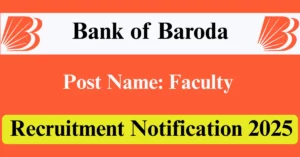 BOB Recruitment 2025 Apply for 1 Faculty Vacancies in Mahasamund – Chhattisgarh location. Bank of Baroda Officials are recently published a job notification to fill up 1 Posts through Offline mode. All the eligible aspirants can check the BOB career official website i.e., bankofbaroda.in recruitment 2025. The last date to Apply Offline on or before 04-Aug-2025.