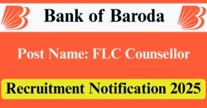 BOB Recruitment 2025 Apply for 1 FLC Counsellor Vacancies in Udham Singh Nagar – Uttarakhand location. Bank of Baroda Officials are recently published a job notification to fill up 1 Posts through Offline mode. All the eligible aspirants can check the BOB career official website i.e., bankofbaroda.in recruitment 2025. The last date to Apply Offline on or before 03-Aug-2025.
