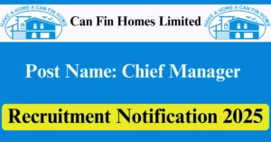 Can Fin Homes Recruitment 2025 Apply for Various Chief Manager Vacancies in Bengaluru – Karnataka location. Can Fin Homes Limited Officials are recently published a job notification to fill up Various Posts through Online mode. All the eligible aspirants can check the Can Fin Homes career official website i.e., canfinhomes.com recruitment 2025. The last date to Apply Online on or before 08-Aug-2025.