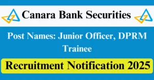 Canara Bank Securities Recruitment 2025 Apply for 35 Junior Officer, DPRM Trainee Vacancies in All India location. Canara Bank Securities Limited Officials are recently published a job notification to fill up 35 Posts through Offline mode. All the eligible aspirants can check the Canara Bank Securities career official website i.e., canmoney.in recruitment 2025. The last date to Apply Offline on or before 31-Jul-2025.