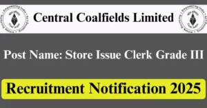 CCL Recruitment 2025 Apply for 4 Store Issue Clerk Grade III Vacancies in Ranchi – Jharkhand location. Central Coalfields Limited Officials are recently published a job notification to fill up 4 Posts through Offline mode. All the eligible aspirants can check the CCL career official website i.e., centralcoalfields.in recruitment 2025. The last date to Apply Offline on or before 15-Nov-2025.