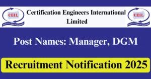 CEIL Recruitment 2025 Apply for 03 Manager, DGM Vacancies in Navi Mumbai – Maharashtra location. Certification Engineers International Limited Officials are recently published a job notification to fill up 03 Posts through Online mode. All the eligible aspirants can check the CEIL career official website i.e., ceil.co.in recruitment 2025. The last date to Apply Online on or before 30-Jul-2025.
