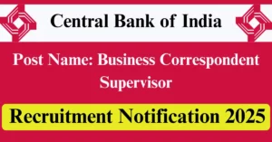 Central Bank of India Recruitment 2025 Apply for 4 BC Supervisor Vacancies in Hardoi, Moradabad, Lakhimpur Kheri, Bareilly – Uttar Pradesh location. Central Bank of India Officials are recently published a job notification to fill up 4 Posts through Offline mode. All the eligible aspirants can check the Central Bank of India career official website i.e., centralbankofindia.co.in recruitment 2025. The last date to Apply Offline on or before 12-Aug-2025.