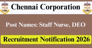Chennai Corporation Recruitment 2026 Apply for 311 Staff Nurse, DEO Vacancies in Chennai – Tamil Nadu location. Greater Chennai Corporation Officials are recently published a job notification to fill up 311 Posts through Offline mode. All the eligible aspirants can check the Chennai Corporation career official website i.e., chennaicorporation.gov.in recruitment 2026. The last date to Apply Offline on or before 05-Jan-2026.