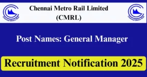 CMRL Recruitment 2025 Apply for 2 General Manager Vacancies in Chennai – Tamil Nadu location. Chennai Metro Rail Limited Officials are recently published a job notification to fill up 2 Posts through Online mode. All the eligible aspirants can check the CMRL career official website i.e., chennaimetrorail.org recruitment 2025. The last date to Apply Online on or before 23-Jun-2025.