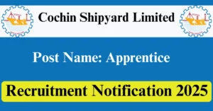 Interested and eligible candidates can apply Online at Cochin Shipyard Limited official website cochinshipyard.com, Starting from 01-07-2025 to 15-Jul-2025