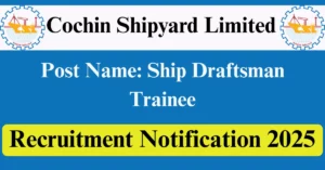 Cochin Shipyard Limited Recruitment 2025 Apply for 35 Ship Draftsman Trainee Vacancies in Kochi – Kerala location. Cochin Shipyard Limited Officials are recently published a job notification to fill up 35 Posts through Online mode. All the eligible aspirants can check the Cochin Shipyard Limited career official website i.e., cochinshipyard.com recruitment 2025. The last date to Apply Online on or before 22-Aug-2025.
