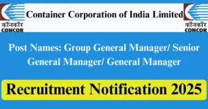 CONCOR Recruitment 2025 Apply for 10 Group General Manager, Senior General Manager Vacancies in All India location. Container Corporation of India Limited Officials are recently published a job notification to fill up 10 Posts through Offline mode. All the eligible aspirants can check the CONCOR career official website i.e., concorindia.co.in recruitment 2025. The last date to Apply Offline on or before 13-Aug-2025.