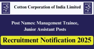 Cotton Corporation of India Limited Recruitment 2025 Apply for 147 Management Trainee, Junior Assistant Vacancies in All India location. Cotton Corporation of India Limited Officials are recently published a job notification to fill up 147 Posts through Online mode. All the eligible aspirants can check the Cotton Corporation of India Limited career official website i.e., cotcorp.org.in recruitment 2025. The last date to Apply Online on or before 24-May-2025.