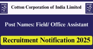 Cotton Corporation of India Limited Recruitment 2025 Apply for Various Field/ Office Assistant Vacancies in Rajasthan location. Cotton Corporation of India Limited Officials are recently published a job notification to fill up Various Posts through Walkin mode. All the eligible aspirants can check the Cotton Corporation of India Limited career official website i.e., cotcorp.org.in recruitment 2025. The last date to attend for Walk-in-interview on 23-Sep-2025.