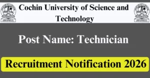 CUSAT Recruitment 2026 Apply for 1 Technician Grade I Vacancies in Kochi – Kerala location. Cochin University of Science and Technology Officials are recently published a job notification to fill up 1 Posts through Online/Offline mode. All the eligible aspirants can check the CUSAT career official website i.e., cusat.ac.in recruitment 2026. The last date to Apply Online/Offline on or before 17-Jan-2026.