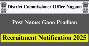 DC Office Nagaon Recruitment 2025 Apply for 68 Gaon Pradhan Vacancies in Nagaon – Assam location. District Commissioner Office Nagaon Officials are recently published a job notification to fill up 68 Posts through Offline mode. All the eligible aspirants can check the DC Office Nagaon career official website i.e., nagaon.assam.gov.in recruitment 2025. The last date to Apply Offline on or before 30-Dec-2025.