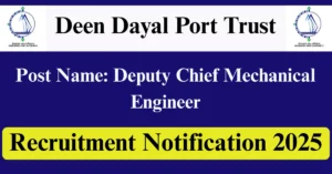 Deen Dayal Port Trust Recruitment 2025 Apply for 1 Deputy Chief Mechanical Engineer Vacancies in Kutch – Gujarat location. Deen Dayal Port Trust Officials are recently published a job notification to fill up 1 Posts through Online/Offline mode. All the eligible aspirants can check the Deen Dayal Port Trust career official website i.e., deendayalport.gov.in recruitment 2025. The last date to Apply Online/Offline on or before 30-Aug-2025.