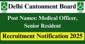 Delhi Cantonment Board Recruitment 2025 Apply for 30 Medical Officer, Senior Resident Vacancies in Delhi – New Delhi location. Delhi Cantonment Board Officials are recently published a job notification to fill up 30 Posts through Online mode. All the eligible aspirants can check the Delhi Cantonment Board career official website i.e., delhi.cantt.gov.in recruitment 2025. The last date to Apply Online on or before 04-Aug-2025.