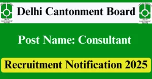 Delhi Cantonment Board Recruitment 2025 Apply for 2 Consultant Vacancies in Delhi – New Delhi location. Delhi Cantonment Board Officials are recently published a job notification to fill up 2 Posts through Walkin mode. All the eligible aspirants can check the Delhi Cantonment Board career official website i.e., delhi.cantt.gov.in recruitment 2025. The last date to attend for Walk-in-interview on 19-Dec-2025.