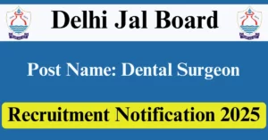 Delhi Jal Board Recruitment 2025 Apply for 1 Dental Surgeon Vacancies in Delhi – New Delhi location. Delhi Jal Board Officials are recently published a job notification to fill up 1 Posts through Offline mode. All the eligible aspirants can check the Delhi Jal Board career official website i.e., delhijalboard.delhi.gov.in recruitment 2025. The last date to Apply Offline on or before 30-Nov-2025.