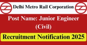 DMRC Recruitment 2025 Apply for 4 Junior Engineer (Civil) Vacancies in Delhi – New Delhi location. Delhi Metro Rail Corporation Officials are recently published a job notification to fill up 4 Posts through Offline mode. All the eligible aspirants can check the DMRC career official website i.e., delhimetrorail.com recruitment 2025. The last date to Apply Offline on or before 29-Jul-2025.