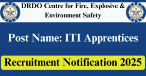 DRDO CFEES Recruitment 2025 Apply for 38 ITI Apprentices Vacancies in Delhi – New Delhi location. DRDO Centre for Fire, Explosive & Environment Safety Officials are recently published a job notification to fill up 38 Posts through Online mode. All the eligible aspirants can check the DRDO CFEES career official website i.e., drdo.gov.in recruitment 2025. The last date to Apply Online on or before 10-Dec-2025.