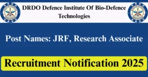 DRDO DIBT Recruitment 2025 Apply for 11 JRF, Research Associate Vacancies in Mysuru – Karnataka location. DRDO Defence Institute Of Bio-Defence Technologies Officials are recently published a job notification to fill up 11 Posts through Offline mode. All the eligible aspirants can check the DRDO DIBT career official website i.e., drdo.gov.in recruitment 2025. The last date to Apply Offline on or before 28-Oct-2025.