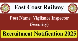 East Coast Railway Recruitment 2025 Apply for 01 Vigilance Inspector (Security) Vacancies in Bhubaneswar – Odisha location. East Coast Railway Officials are recently published a job notification to fill up 01 Posts through Offline mode. All the eligible aspirants can check the East Coast Railway career official website i.e., eastcoastrail.indianrailways.gov.in recruitment 2025. The last date to Apply Offline on or before 17-Jul-2025.