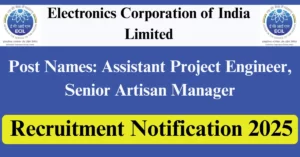 ECIL Recruitment 2025 Apply for 5 Assistant Project Engineer, Senior Artisan Vacancies in Visakhapatnam – Andhra Pradesh location. Electronics Corporation of India Limited Officials are recently published a job notification to fill up 5 Posts through Walkin mode. All the eligible aspirants can check the ECIL career official website i.e., ecil.co.in recruitment 2025. The last date to attend for Walk-in-interview on 05-Jun-2025.