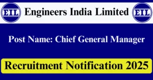 EIL Recruitment 2025 Apply for 1 Chief General Manager Vacancies in Delhi – New Delhi, Gurugram – Haryana, Chennai – Tamil Nadu, Vadodara – Gujarat, Kolkata – West Bengal, Mumbai – Maharashtra location. Engineers India Limited Officials are recently published a job notification to fill up 1 Posts through Online mode. All the eligible aspirants can check the EIL career official website i.e., engineersindia.com recruitment 2025. The last date to Apply Online on or before 19-Dec-2025.