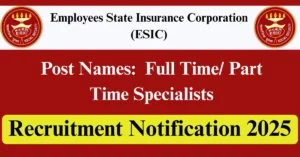 ESIC Recruitment 2025 Apply for 331 Full Time/ Part Time Specialists, Senior Resident Vacancies in Khairthal-Tijara – Rajasthan, Ahmedabad – Gujarat, Faridabad – Haryana, Ernakulam – Kerala, Kolkata – West Bengal, Chennai – Tamil Nadu location. Employees State Insurance Corporation Officials are recently published a job notification to fill up 331 Posts through Walkin mode. All the eligible aspirants can check the ESIC career official website i.e., esic.gov.in recruitment 2025. The last date to attend for Walk-in-interview on 01-Aug-2025.