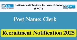 FACT Recruitment 2025 Apply for Various Clerk Vacancies in Odisha – Telangana – Tamil Nadu – Karnataka – Andhra Pradesh – Maharashtra location. Fertilizers and Chemicals Travancore Limited Officials are recently published a job notification to fill up Various Posts through Online/Offline mode. All the eligible aspirants can check the FACT career official website i.e., fact.co.in recruitment 2025. The last date to Apply Online/Offline on or before 07-Aug-2025.