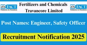 FACT Recruitment 2025 Apply for Various Engineer, Safety Officer Vacancies in All India location. Fertilizers and Chemicals Travancore Limited Officials are recently published a job notification to fill up Various Posts through Online/Offline mode. All the eligible aspirants can check the FACT career official website i.e., fact.co.in recruitment 2025. The last date to Apply Online/Offline on or before 26-May-2025.