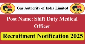 GAIL Recruitment 2025 Apply for 2 Shift Duty Medical Officer Vacancies in Auraiya – Uttar Pradesh location. Gas Authority of India Limited Officials are recently published a job notification to fill up 2 Posts through Offline mode. All the eligible aspirants can check the GAIL career official website i.e., gailonline.com recruitment 2025. The last date to Apply Offline on or before 17-Jul-2025.