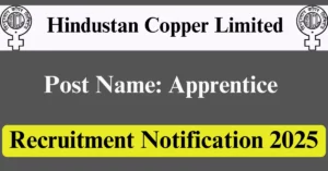 Hindustan Copper Recruitment 2025 Apply for 10 Apprentice Vacancies in Raigad – Maharashtra location. Hindustan Copper Limited Officials are recently published a job notification to fill up 10 Posts through Offline mode. All the eligible aspirants can check the Hindustan Copper career official website i.e., hindustancopper.com recruitment 2025. The last date to Apply Offline on or before 30-Sep-2025.