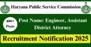 HPSC Recruitment 2025 Apply for 408 Engineer, Assistant District Attorney Vacancies in Haryana location. Haryana Public Service Commission Officials are recently published a job notification to fill up 408 Posts through Online mode. All the eligible aspirants can check the HPSC career official website i.e., hpsc.gov.in recruitment 2025. The last date to Apply Online on or before 02-Sep-2025.