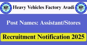 HVF Avadi Recruitment 2025 Apply for 04 Assistant/Stores Vacancies in Chennai – Tamil Nadu location. Heavy Vehicles Factory Avadi Officials are recently published a job notification to fill up 04 Posts through Offline mode. All the eligible aspirants can check the HVF Avadi career official website i.e., ddpdoo.gov.in recruitment 2025. The last date to Apply Offline on or before 22-Nov-2025.