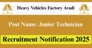 HVF Avadi Recruitment 2025 Apply for 98 Junior Technician Vacancies in Chennai – Tamil Nadu location. Heavy Vehicles Factory Avadi Officials are recently published a job notification to fill up 98 Posts through Offline mode. All the eligible aspirants can check the HVF Avadi career official website i.e., ddpdoo.gov.in recruitment 2025. The last date to Apply Offline on or before 03-Nov-2025.