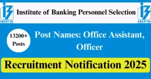 IBPS Recruitment 2025 Apply for 13217 Office Assistant, Officer Vacancies in All India location. Institute of Banking Personnel Selection Officials are recently published a job notification to fill up 13217 Posts through Online mode. All the eligible aspirants can check the IBPS career official website i.e., ibps.in recruitment 2025. The last date to Apply Online on or before 21-Sep-2025.