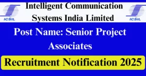 ICSIL Recruitment 2025 Apply for 1 Senior Project Associate Vacancies in Delhi – New Delhi location. Intelligent Communication Systems India Limited Officials are recently published a job notification to fill up 1 Posts through Online mode. All the eligible aspirants can check the ICSIL career official website i.e., icsil.in recruitment 2025. The last date to Apply Online on or before 04-Dec-2025.