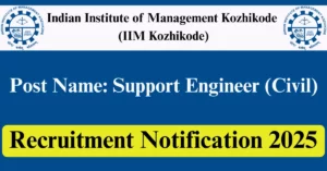 IIM Kozhikode Recruitment 2025 Apply for 02 Support Engineer (Civil) Vacancies in Kozhikode – Kerala location. Indian Institute of Management Kozhikode Officials are recently published a job notification to fill up 02 Posts through Online mode. All the eligible aspirants can check the IIM Kozhikode career official website i.e., iimk.ac.in recruitment 2025. The last date to Apply Online on or before 13-Aug-2025.